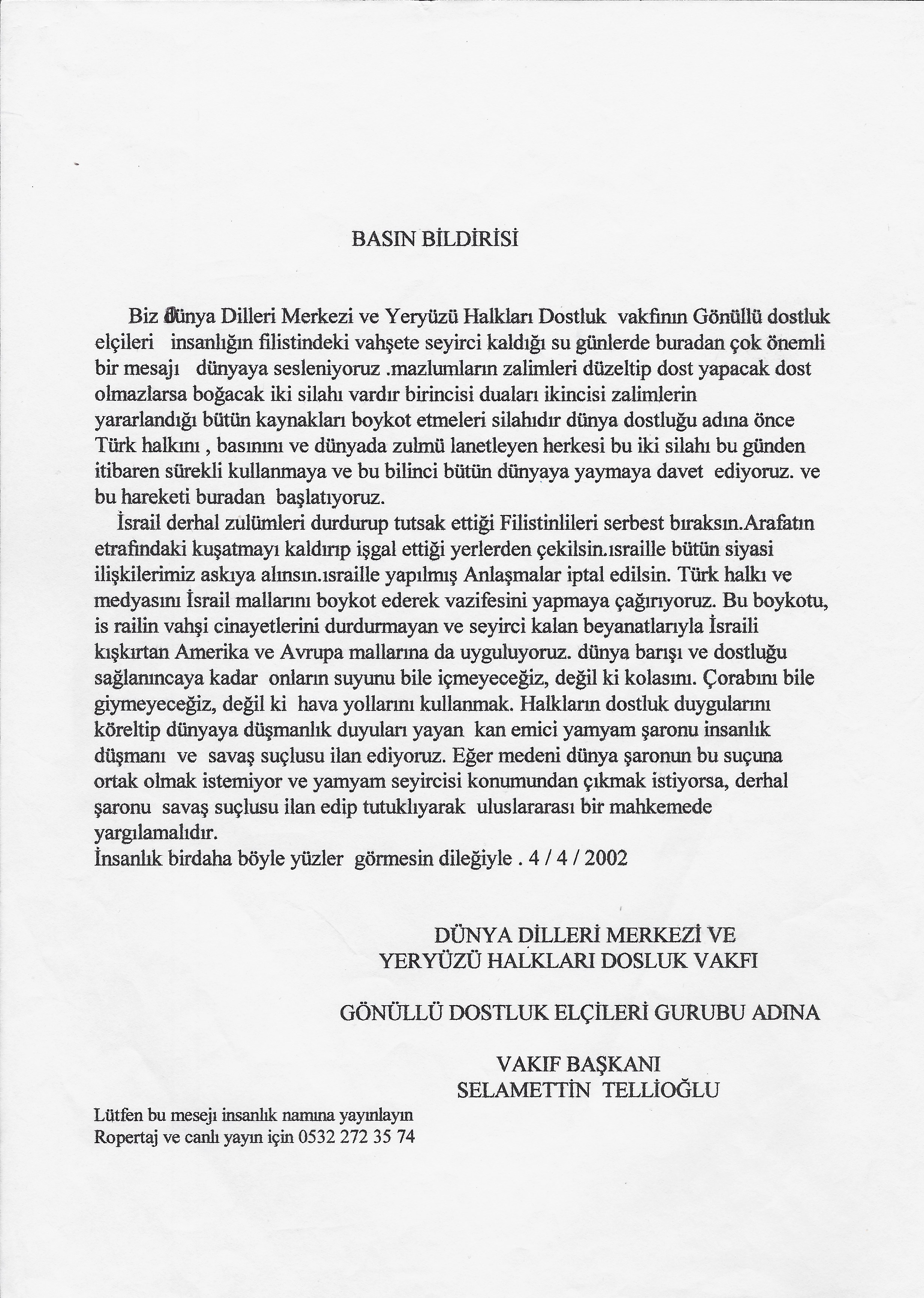 "Zalimede Mazlumada Yardım Et"